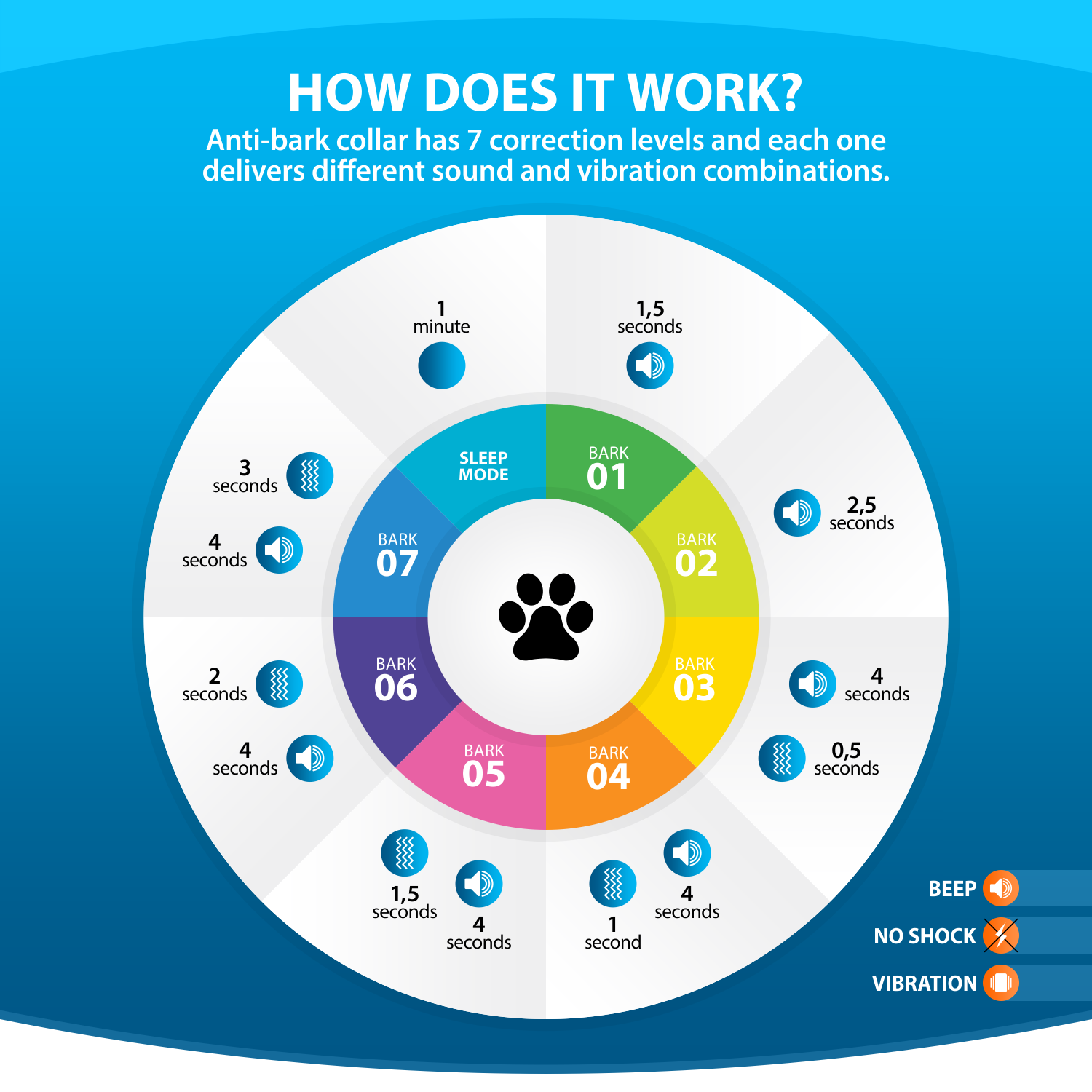 - No shock, no harm - Noticing the movement of your dog's vocal cords a warning beeping sound is produced succeeded by vibrations if the barking continues. Your dog will quickly and easily associate these with his barking making it the ideal humane correction